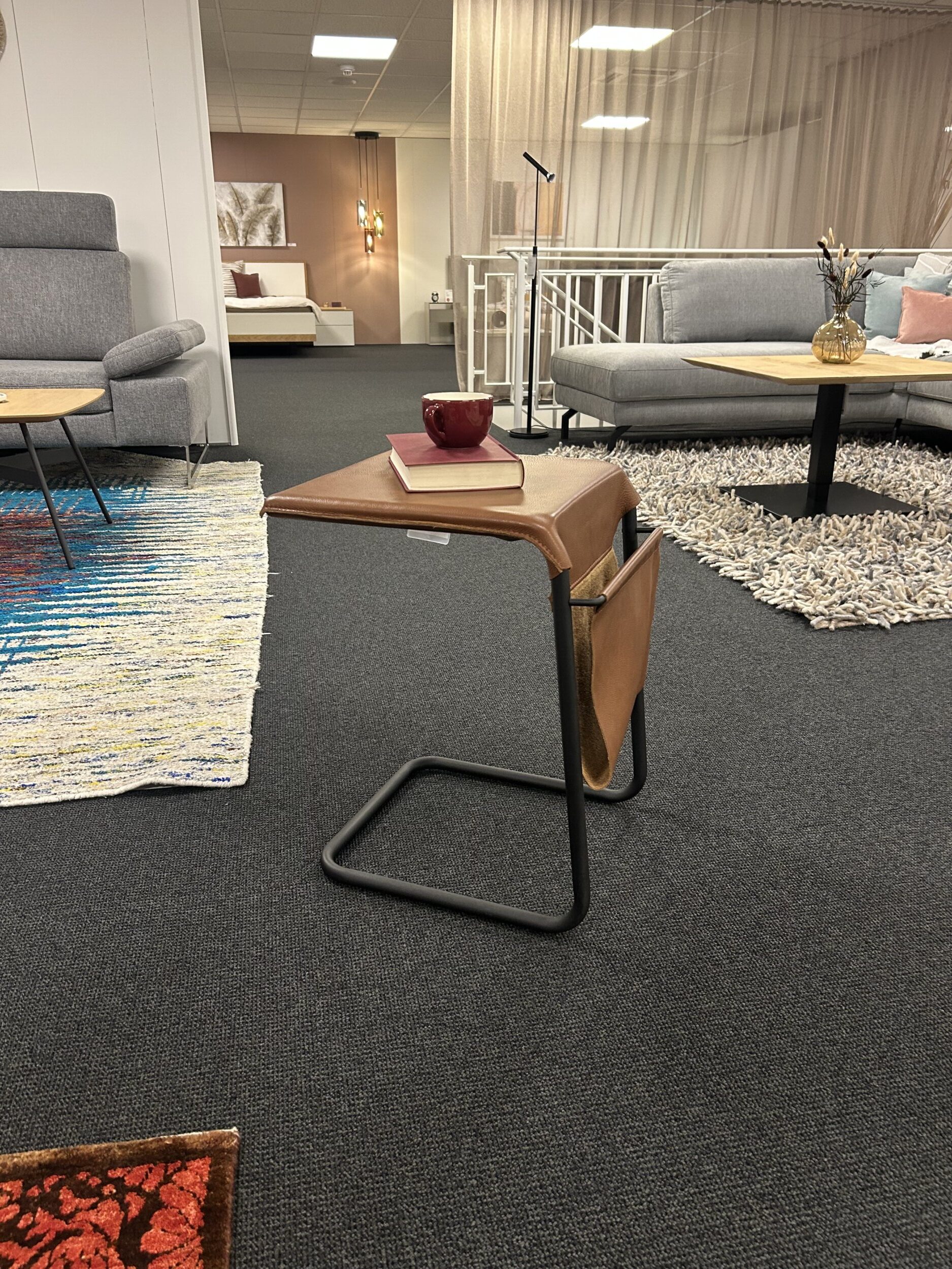 Beistelltisch mit Zeitungsablage in Echtleder braun, B 28 x T 45 / H 49 cm