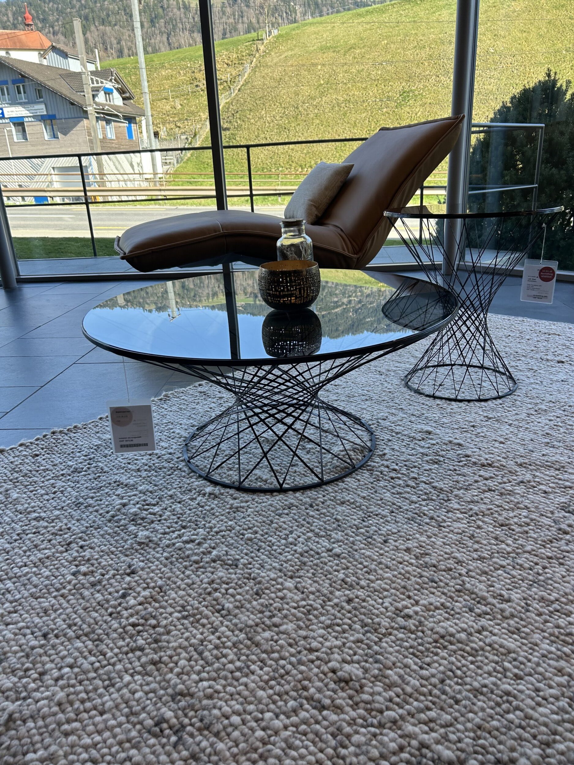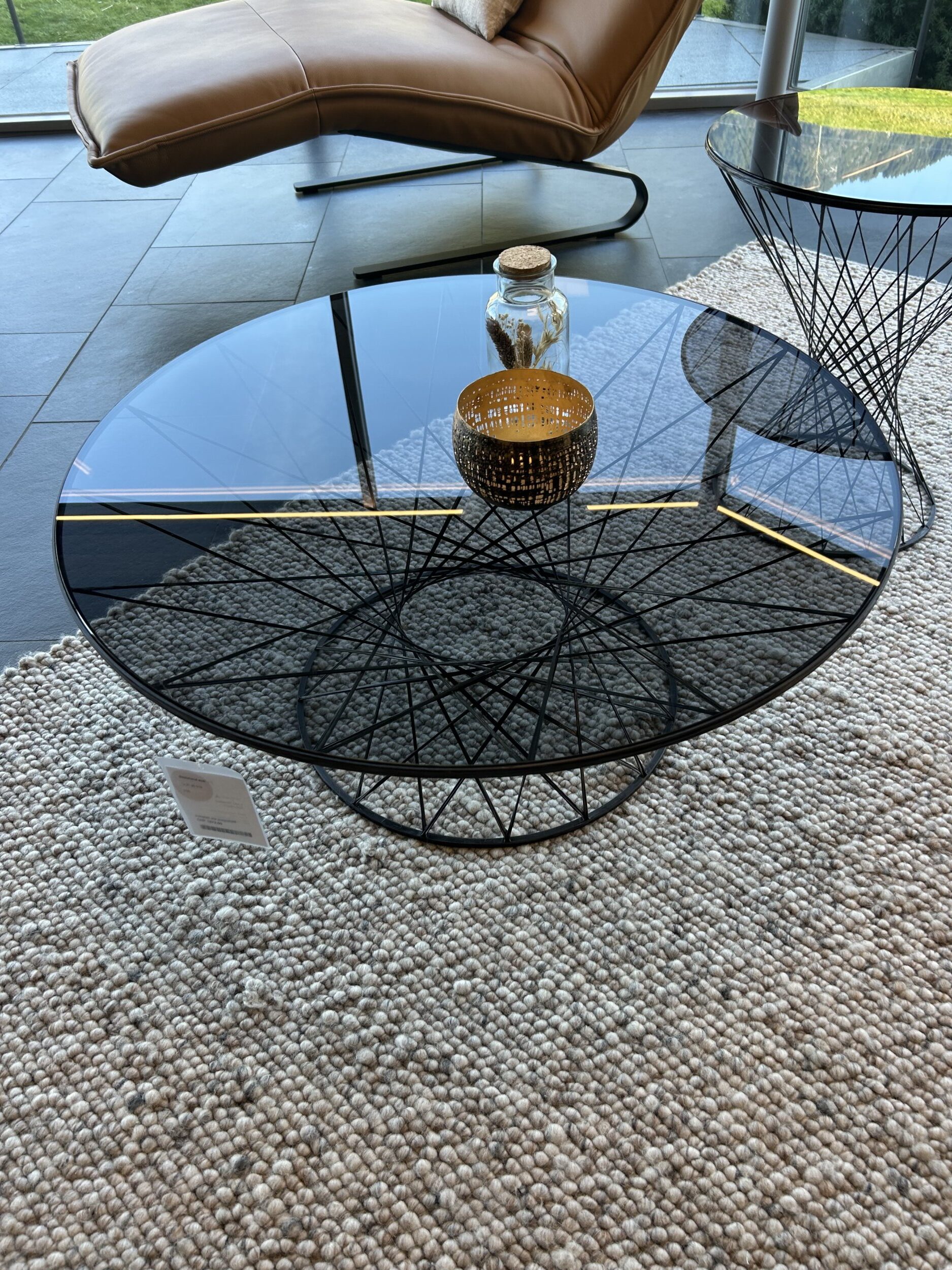 Beistelltisch, Platte Parsolglass grau, Gestell Carbonfasern, Ø 80 / H 35 cm