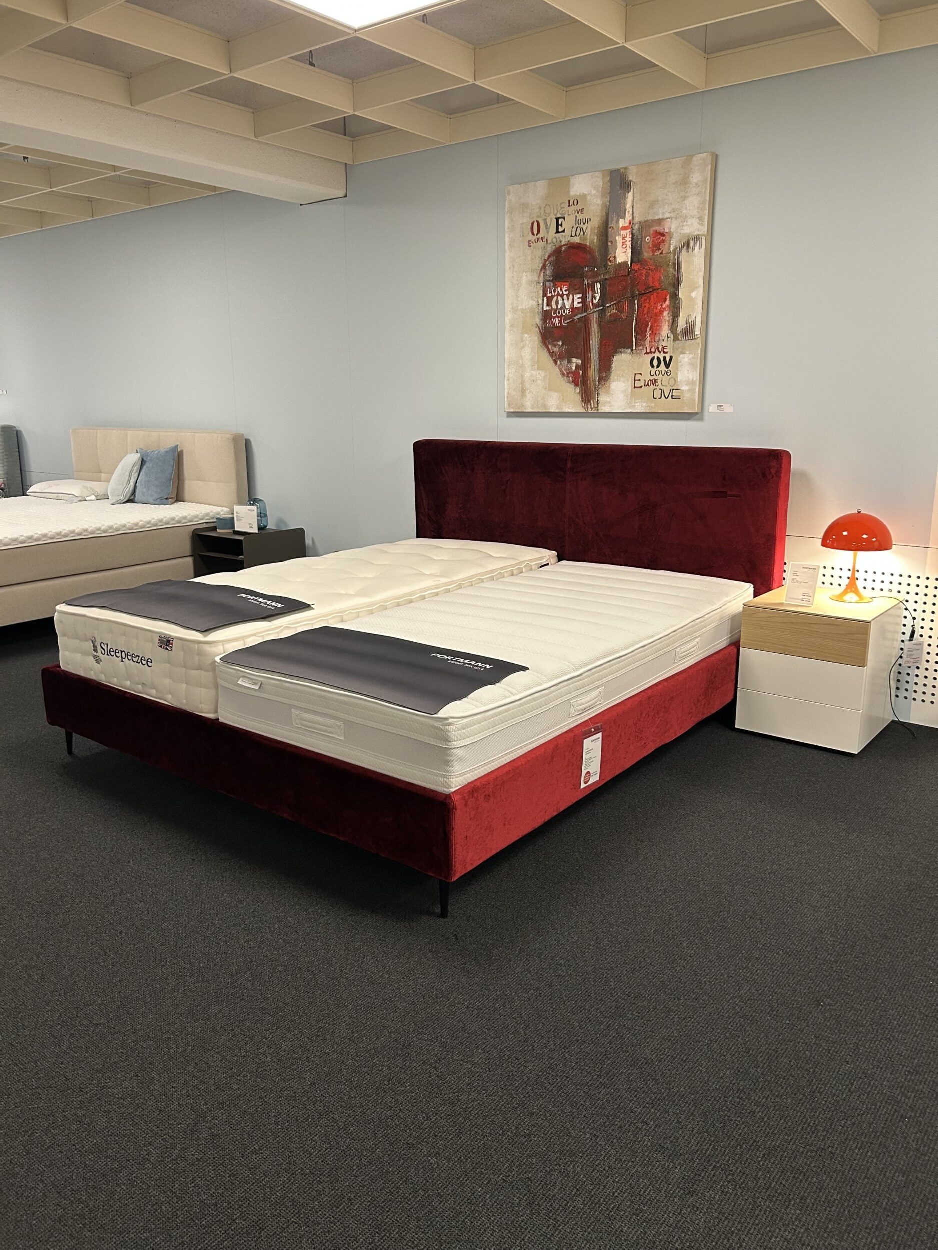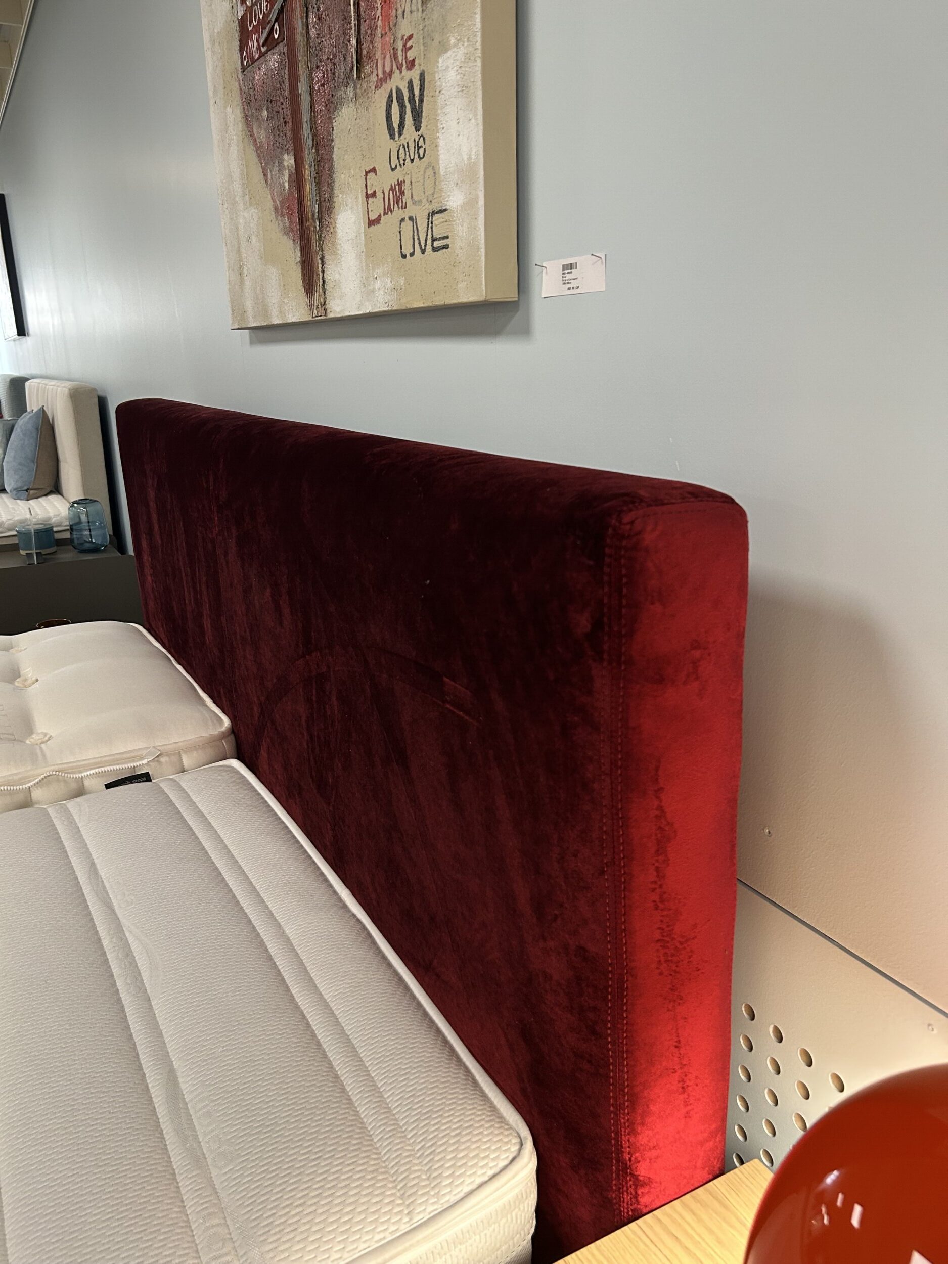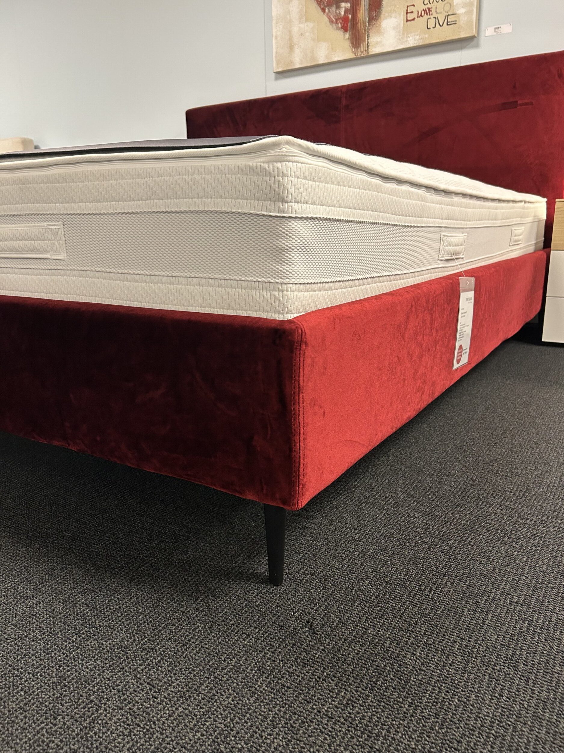 Polsterbett in Stoff Velours rot, Metallfüsse schwarz matt, Liegefläche 180 x 200 cm (ohne Bettinhalt), ca. B 190 x T 218 / H 105 cm