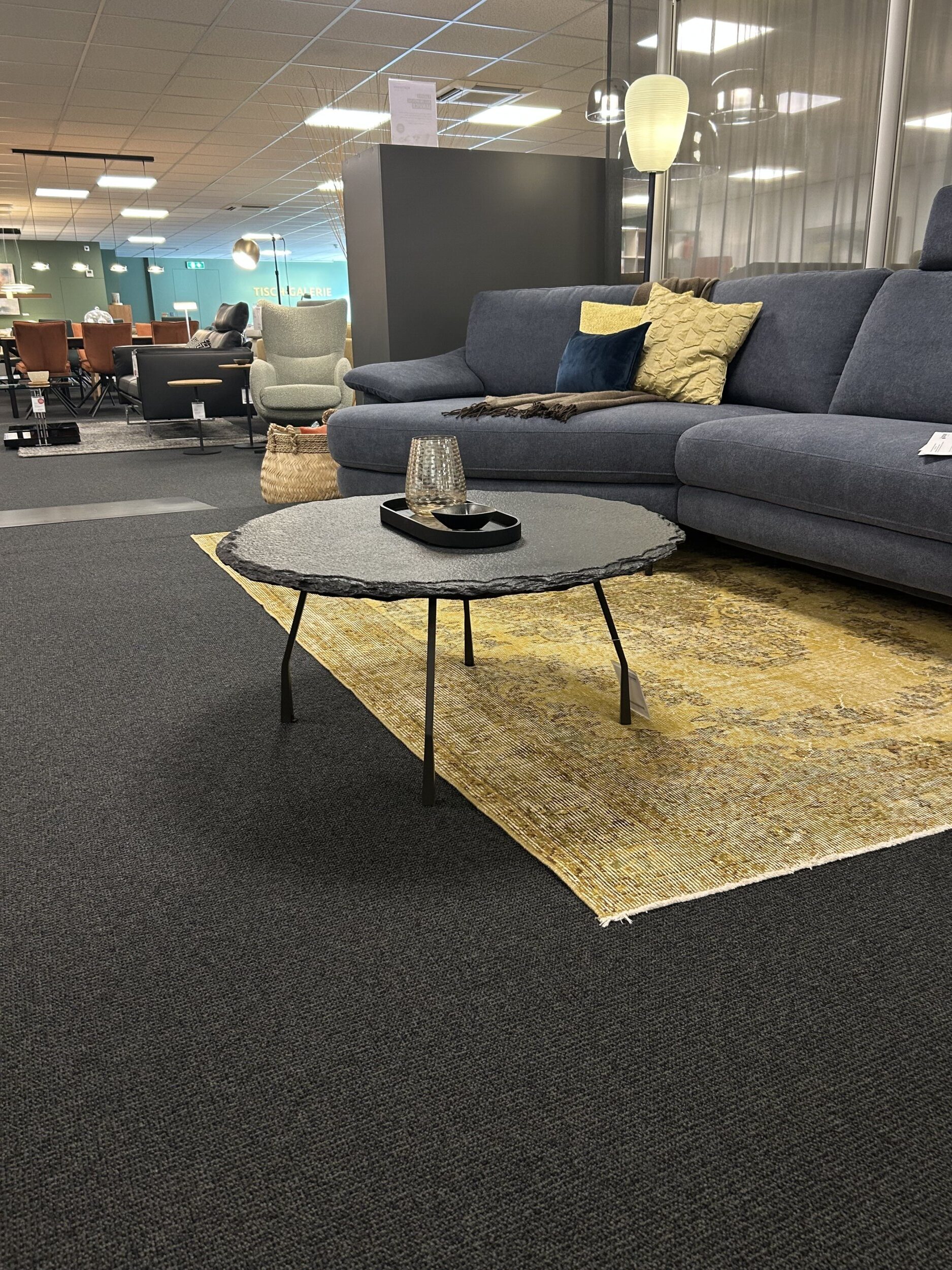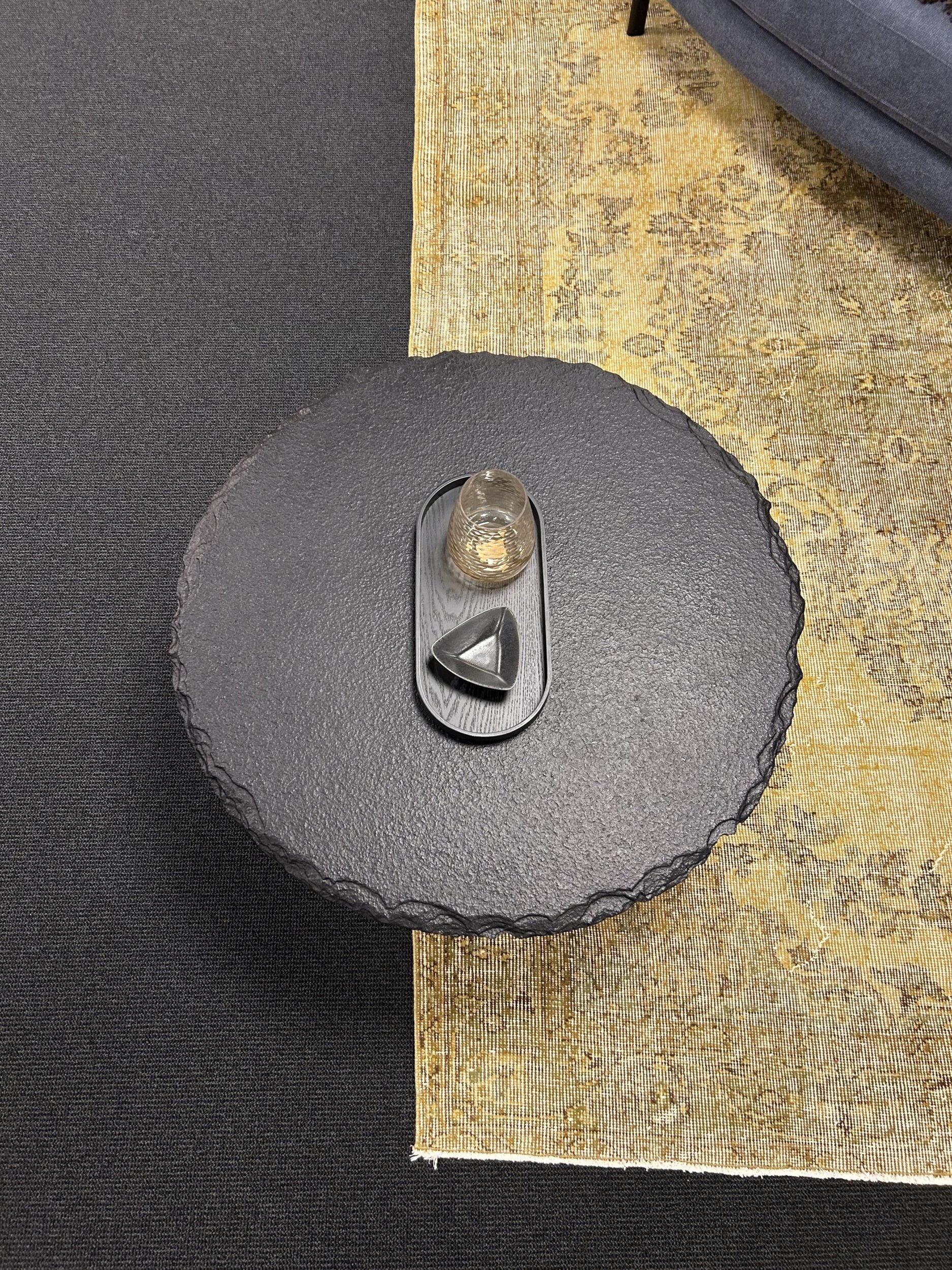 Salontisch, Platte schwarzer Kalkstein, Gestell Metall schwarz lackiert, Ø 80 / H 37 cm