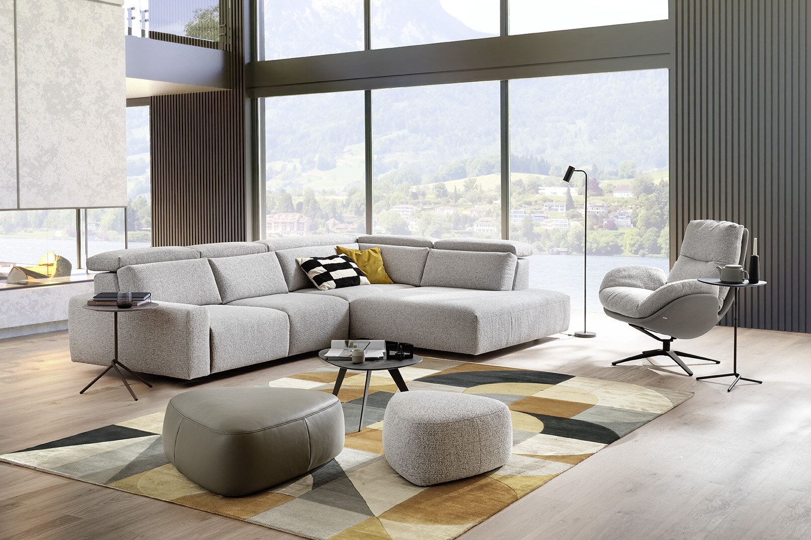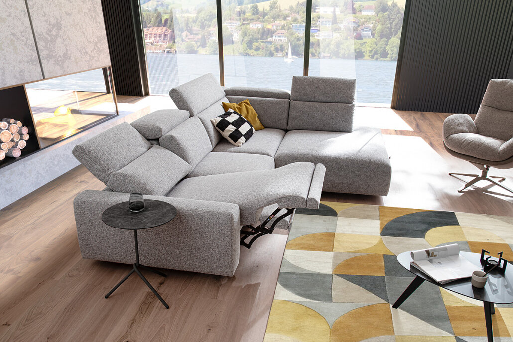 Die Polstergruppe Brent vereint klare Formen mit wohnlicher Gemütlichkeit. Verstellbare Kopfstützen und optionale Relaxfunktionen sorgen für individuellen Komfort, während das moderne Design Leichtigkeit und Eleganz ins Wohnzimmer bringt.