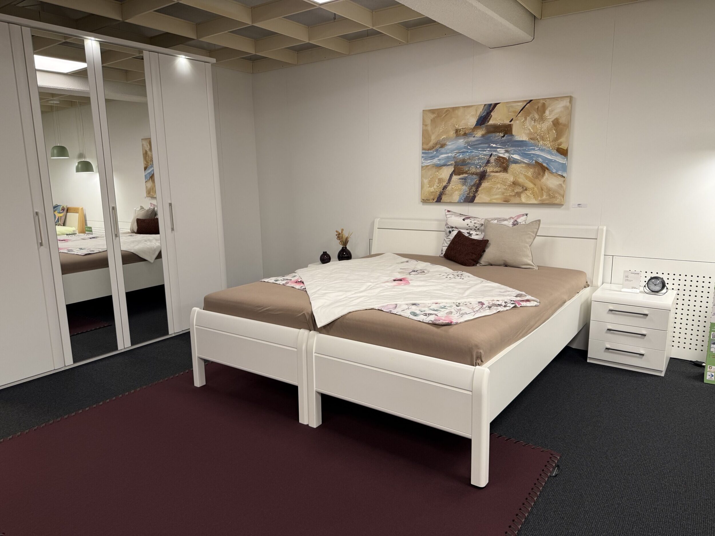 Bettstelle in Lack weiss, Liegefläche 180 x 200 cm, als 2x 90 cm oder 180×200 cm aufstellbar, inkl. 2 Nachttischen mit je drei Schubladen, Stellmass B 290 x T 217 / H 91.4 cm