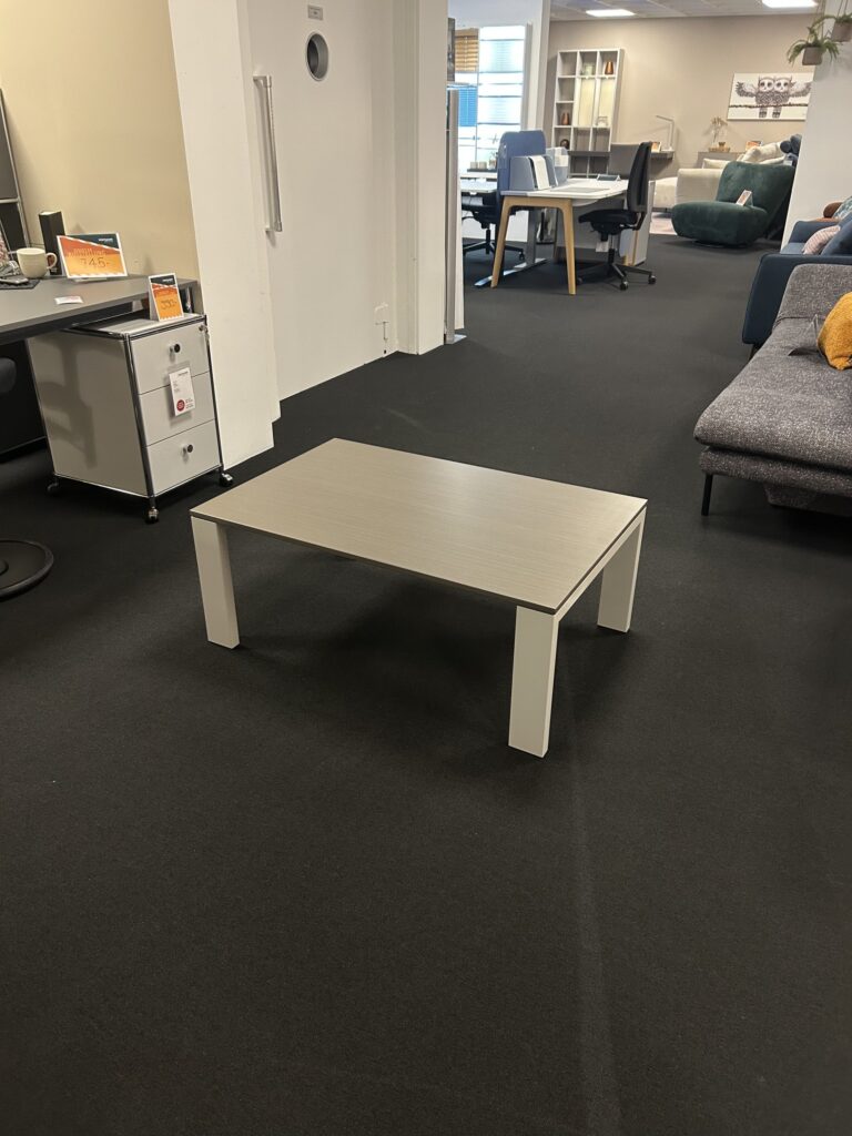 Salontisch mit Tischplatte in feinschliff furniert, Oberfläche leicht zerkratzt, Gestell Lack matt brillantgrau, B 100 x T 65 / H 40 cm