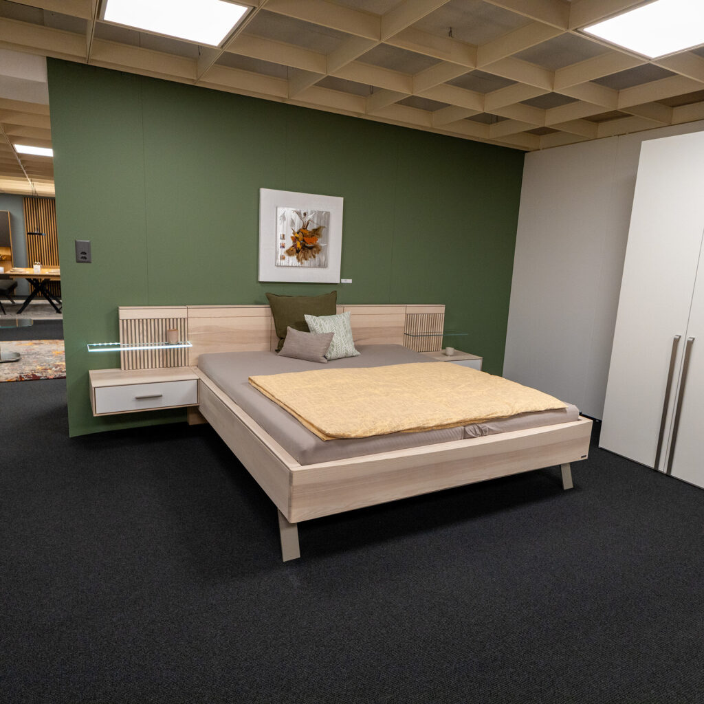 Bett mit Nachttischen in Strukturesche massiv (Fraxinus excelsior)