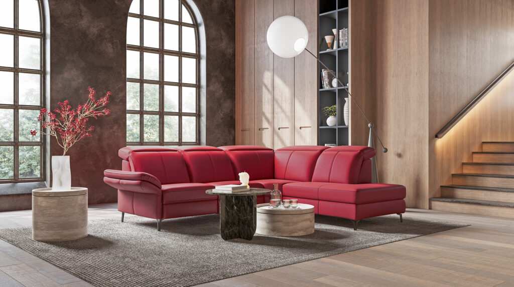 Mit NYON zieht modernes Design und sinnlicher Komfort in Ihr Wohnzimmer ein. Ob für entspannte Stunden allein oder gesellige Abende mit Freunden – NYON bietet großzügigen Platz, gepolsterten Komfort und eine hochwertige Verarbeitung, die man sieht und spürt. Die verstellbaren Kopfstützen ermöglichen individuelle Anpassung, während die elegante Formsprache sowohl moderne als auch klassische Einrichtungsstile perfekt ergänzt.