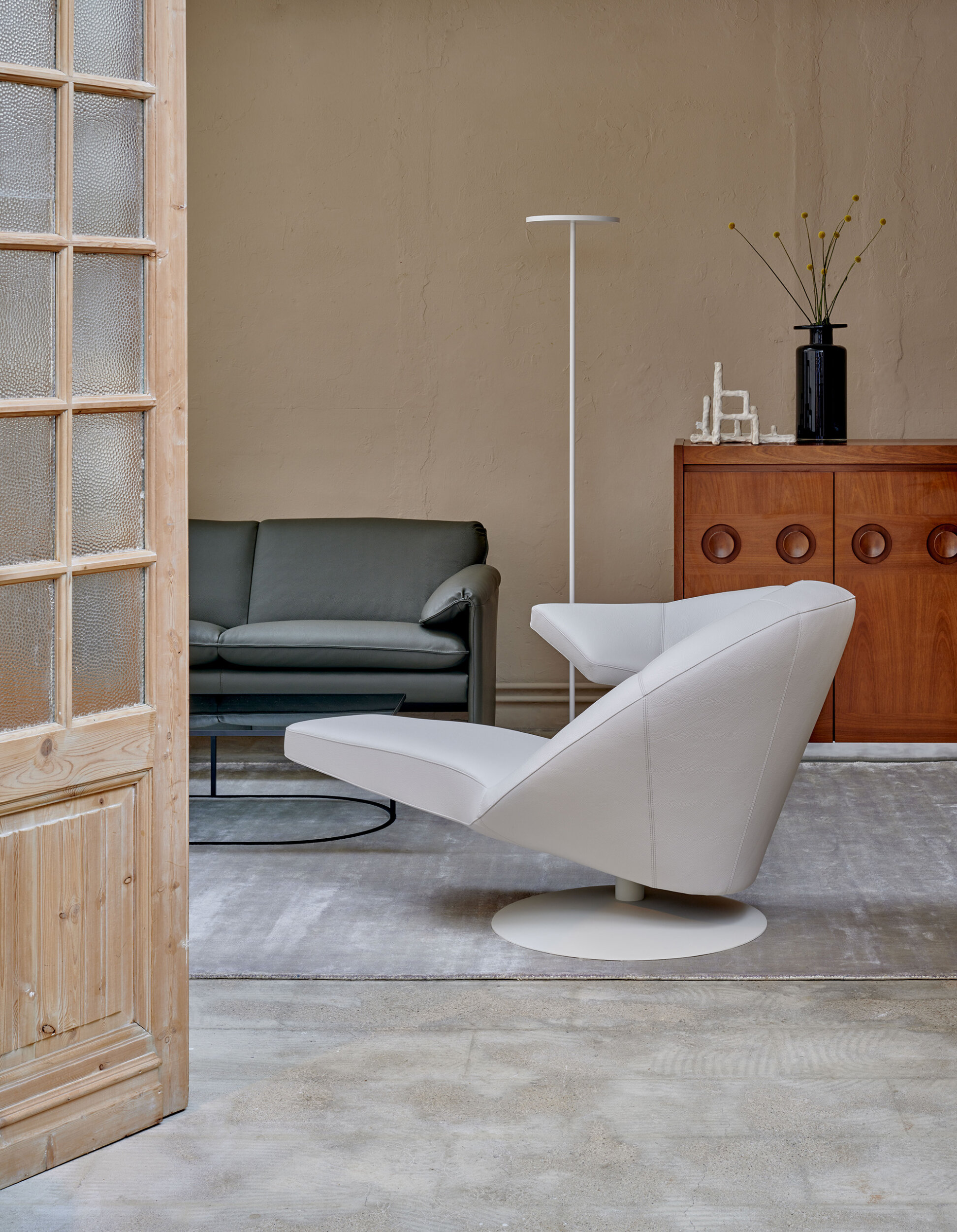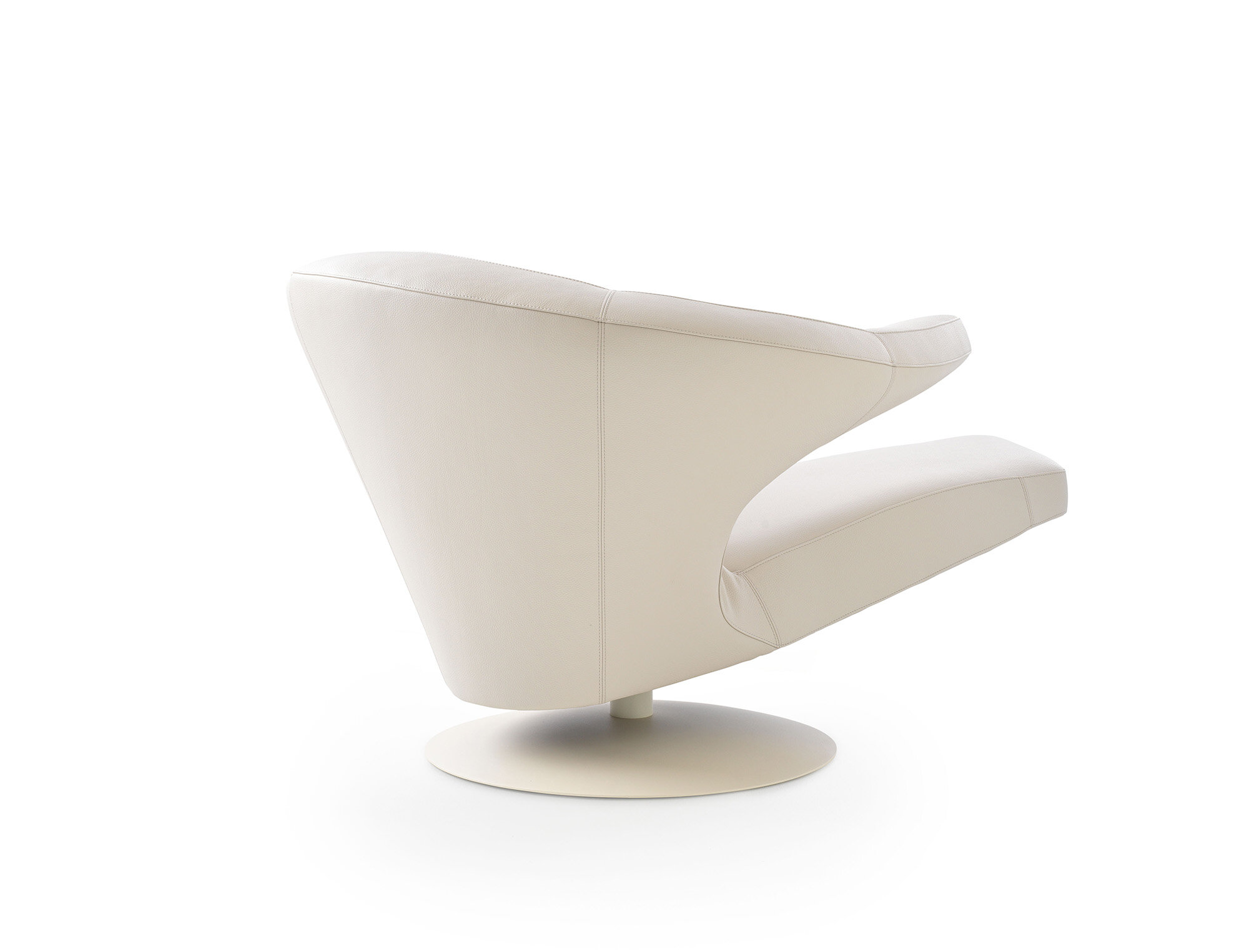 Das beeindruckende Design von Parabolica macht den Sessel zu einem außergewöhnlichen Element in Ihrem Wohnzimmer. Dank seiner asymmetrischen Form bietet er mindestens drei verschiedene Nutzungsmöglichkeiten: normales Sitzen, entspanntes Liegen oder aktives Sitzen mit der Armlehne als praktische Arbeitsfläche.