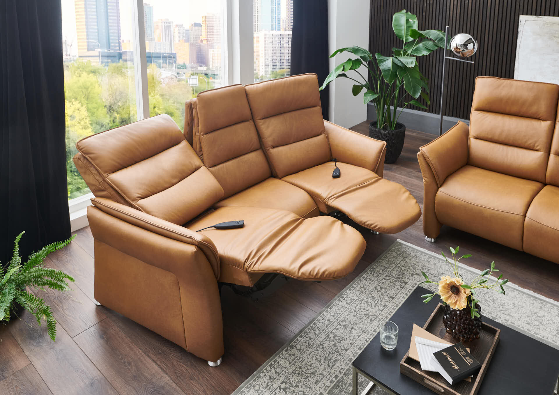 TRAPEA verbindet modernen Lederlook mit hoher Bequemlichkeit – dank Trapezform, integrierten Relaxfunktionen und gemütlicher Polsterung ideal zum entspannten Zurücklehnen.
