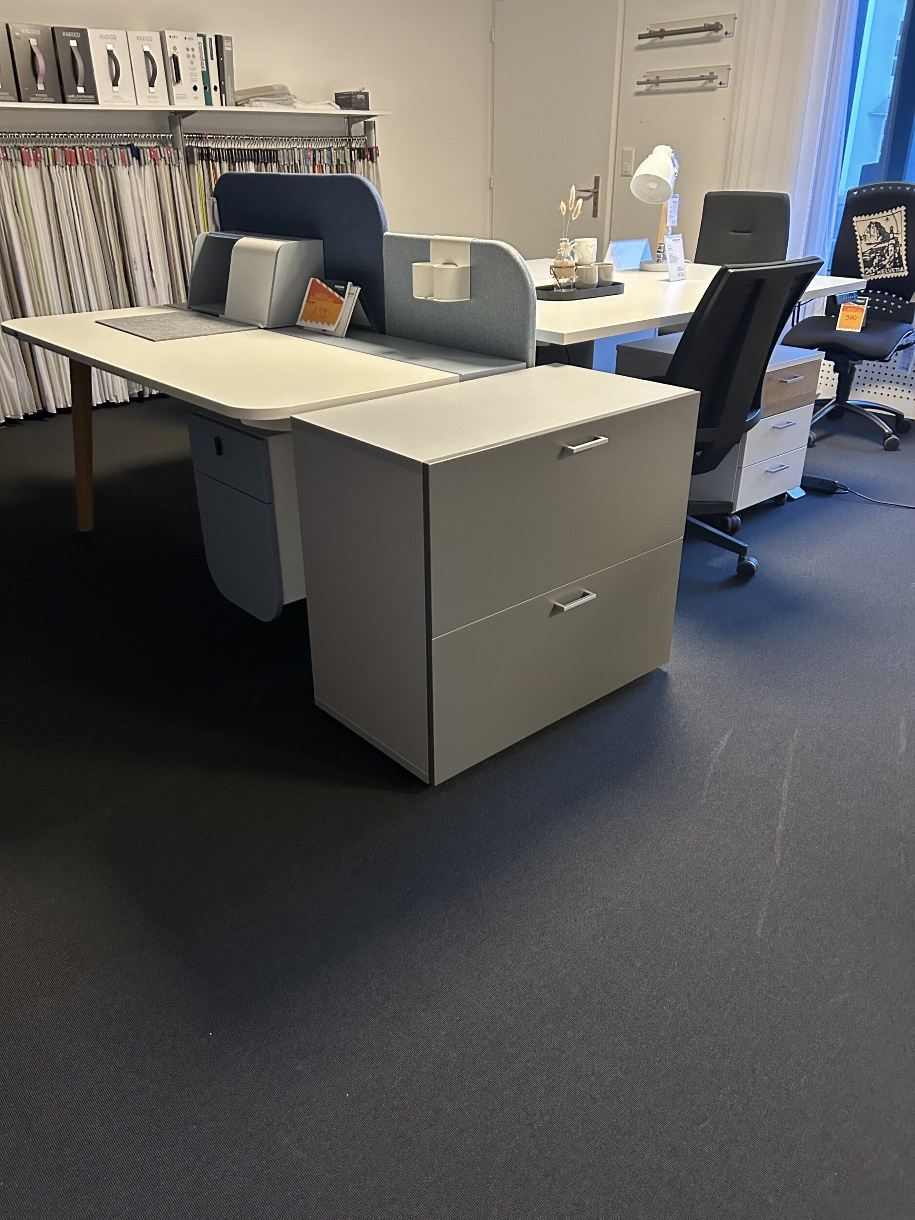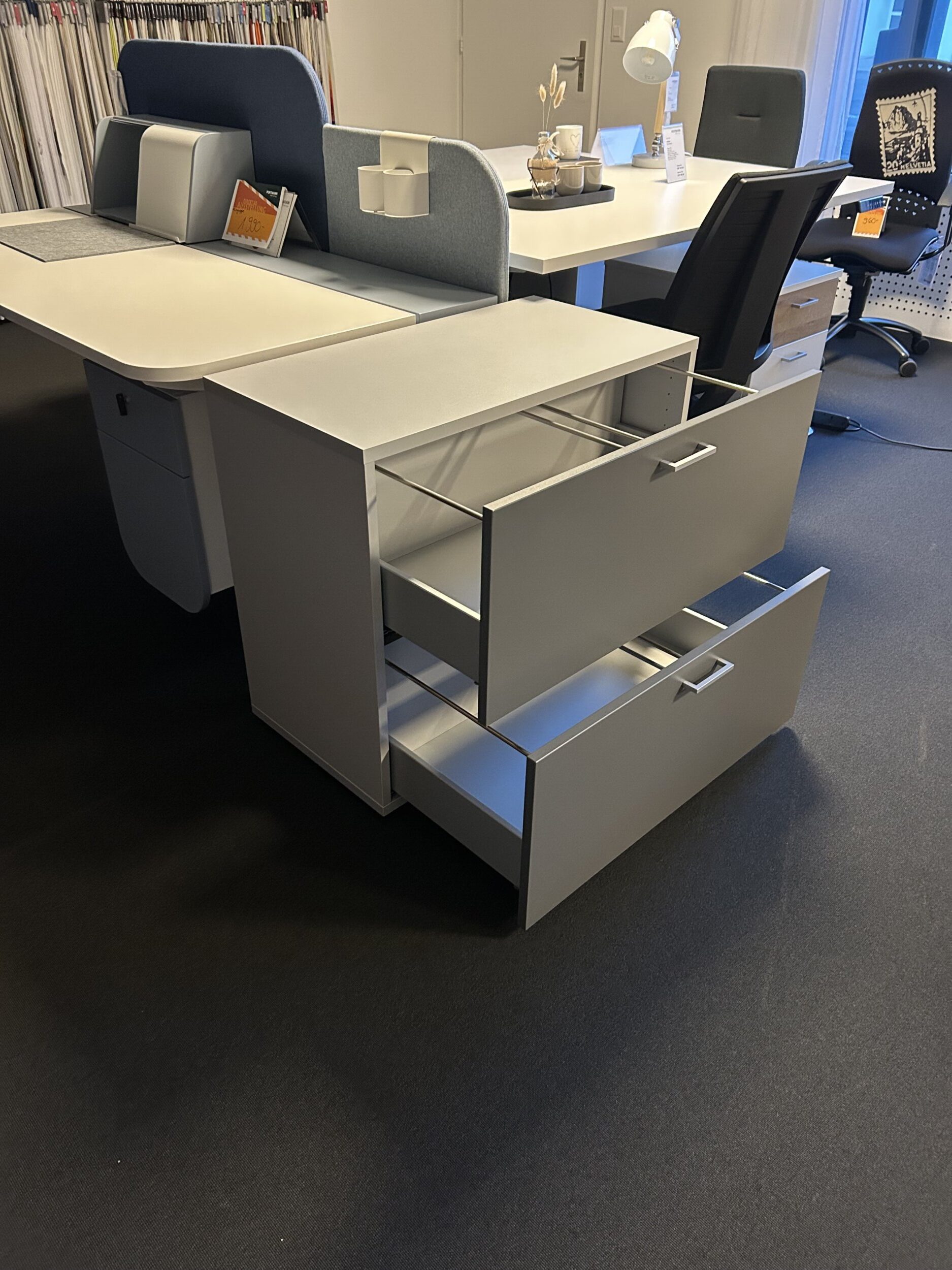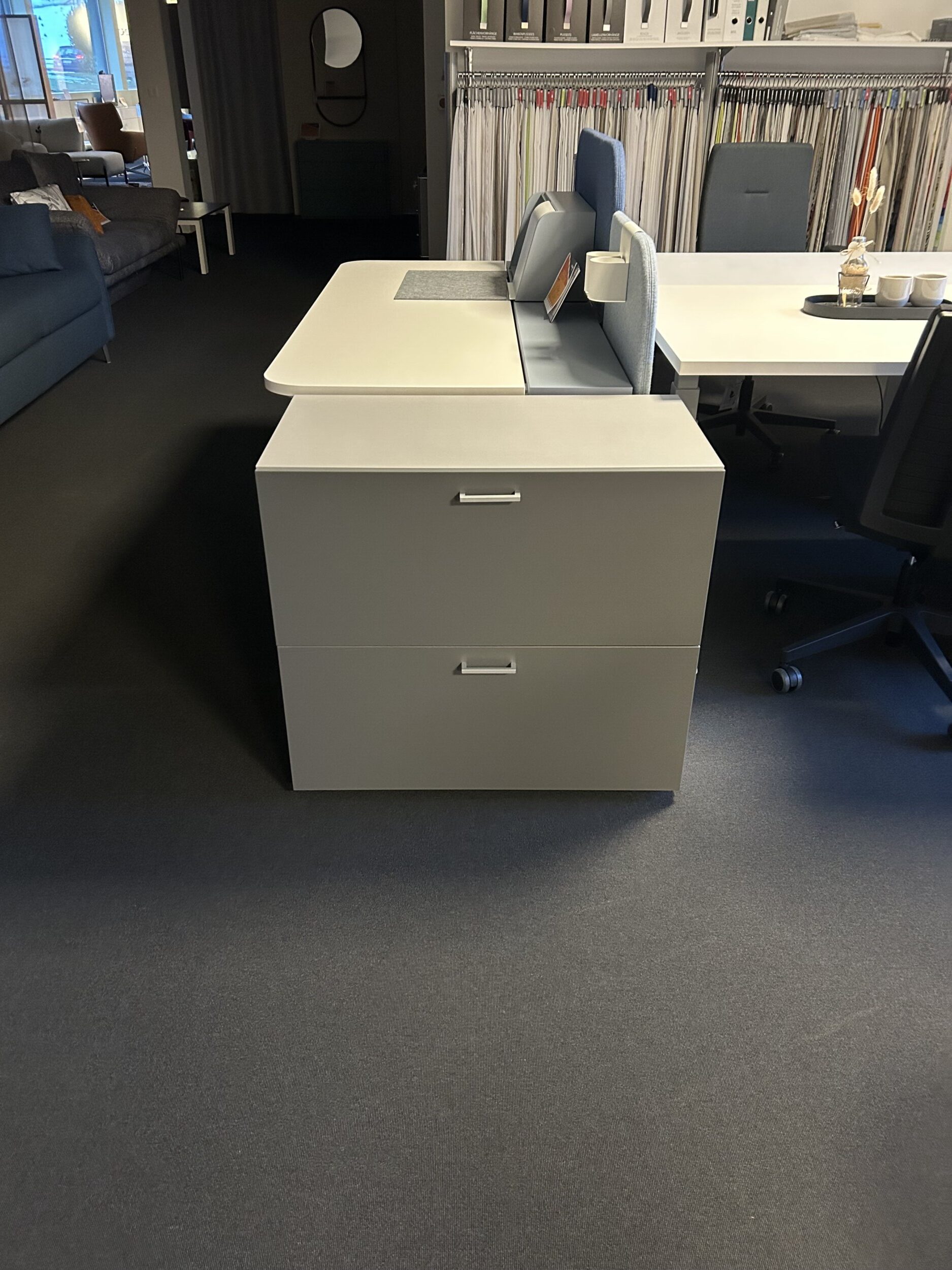 Bürokorpus in alufarbig und anthrazit, Winkelgriff mit zwei Hängeregister Schubladen, B 81.2 x T 54 / H 73.1 cm